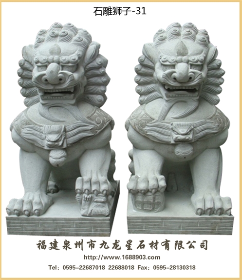 就是用石頭雕刻出來的獅子,是在中國傳統(tǒng)建筑中經(jīng)常使用的一種裝飾物。在中國的宮殿,寺廟,佛塔,橋梁,府邸,園林,陵墓,以及印鈕上都會看到它。但是更多的時候,“石獅”是專門指放在大門左右兩側(cè)的一對獅子。石獅不僅有不同的時代特點,還有明顯的地域特色??傮w上,北方的石獅子外觀大氣,雕琢質(zhì)樸;南方的石獅更為靈氣,造型活潑,雕飾繁多,小獅子也不僅在母獅手掌下,有的爬上獅背,活潑可愛。