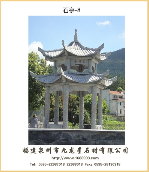 惠安石雕亭子的空間布局可以是三維的立體形態(tài),也可以兼?zhèn)淠撤N平面形態(tài);既可以依附于某種載體又可相對(duì)獨(dú)馬上存在.一樣平常地說來為得當(dāng)特定視點(diǎn)的撫玩必要或裝飾必要石雕亭相對(duì)圓雕的突出特征是經(jīng)形體壓縮處理懲罰后的二維或平面特性.