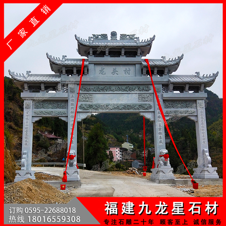 村口石牌坊便是建造在農(nóng)村入口的石牌坊、石牌樓,在鄉(xiāng)村石牌樓的限度精準(zhǔn)定位上,要考慮到人視覺(jué)效果認(rèn)知、石牌樓、周圍環(huán)境中間的關(guān)聯(lián)。