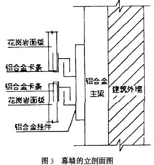 在本工程中,石材部分的加工工作在現(xiàn)場(chǎng)完成,右材采用的是意大利月亮白花崗巖板材,結(jié)構(gòu)膠采用的是由美國GE公司生產(chǎn)SSG-44DO型硅酮結(jié)構(gòu)密封膠。