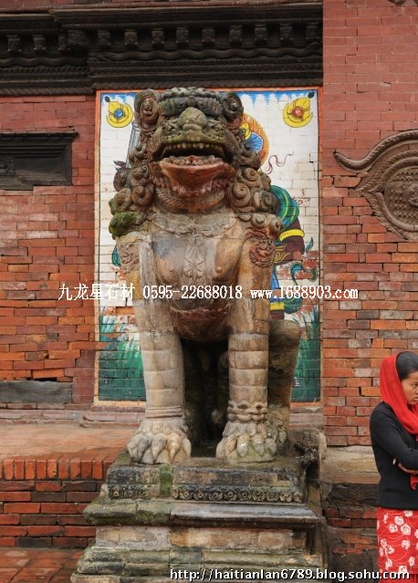 帕特王宮廣場匯集了眾多風(fēng)格古樸的寺廟和石雕。眾石獅們在各自的崗位上日夜守衛(wèi)著馬拉國王的古代宮廷,黑天神廟,加格納拉揚神廟,帕特國王雕像柱和黃金廟。尤其是廟克里希納廟、也稱黑天神廟,處在王宮廣場的核心位置,供黑天神,建于1667年,由于是王室所建,規(guī)模自然比普通神廟大一些,氣勢上勝一籌。所以從外觀上就可以看到,整個神廟坐落在高臺基之上,主殿的圣所正上方,聳立著一座有21個鎦金塔頂?shù)闹窆S狀塔頂,塔亭的欄桿間,栩栩如生的雕刻著印度古典史詩《摩坷婆羅多》和《羅摩衍那》的圖像、神像和鳥獸。除塔頂外完全用石頭建成,遠遠望去,像是一件精美的石雕工藝品。這是尼泊爾建筑藝術(shù)的奇跡,而這樣一座偉大的建筑,竟完全不用圍墻,也沒有手持武器的衛(wèi)兵。那么,誰來護佑她的安全呢?自然是石獅子了。門前一個獅子衛(wèi)隊,那叫一個威武啊,就算是牛鬼蛇神壞人也沒有敢起歹心的。