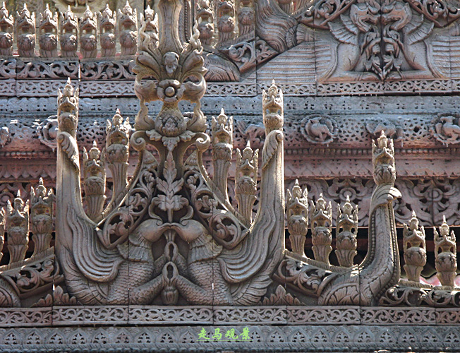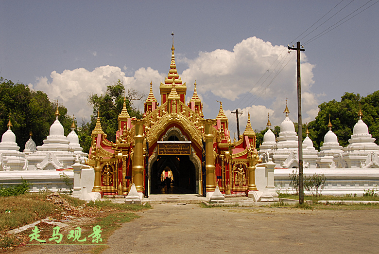阿都瑪希寺的大門,由白色大理石經(jīng)書圍繞著金光四射的寺廟大門。在修建廟宇的問題上,緬甸人是毫不吝嗇的。為什么人們會(huì)說緬甸是富饒中的貧困,原因也許就在此。緬甸人將一生的很多時(shí)光和財(cái)富都貢獻(xiàn)給了佛。