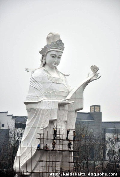 據說,這神像高37米,北京漢白玉雕刻。神像面容慈祥而和藹。