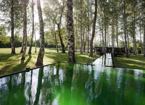 3、融于自然:園林建筑小品要求將人工與自然渾成一體,追求自然又精于人。“雖有人作,宛如天開”則是設(shè)計者們的匠心之處。如在老榕樹下,塑以樹根造型的園凳,似在一片林木中自然形成的斷根樹樁,可達(dá)到以假亂真的程度。又如某屋頂花園中建筑結(jié)構(gòu)柱處理成樹干的形式,使其與周圍環(huán)境相融合。