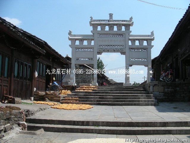 其實(shí),在我看來(lái),而現(xiàn)在新建的牌坊,構(gòu)建意圖已經(jīng)遠(yuǎn)遠(yuǎn)離開(kāi)了被打上封建主義的那些色彩烙印。在用意上已經(jīng)擴(kuò)展了它的內(nèi)涵,使其外延更為豐富和更具觀賞性。如地名、旅游點(diǎn)、廟宇、山門(mén)等以牌坊作為門(mén)頭等標(biāo)志性建筑物,用來(lái)標(biāo)明地名,宣傳文化的建筑物。那些刻寫(xiě)在牌坊上面的楹聯(lián)文字,雖片言只語(yǔ),卻道出了一些人生哲理與敘事抒情趣事趣聞,可謂深淺皆成趣,雅俗均共賞。