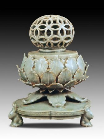 青瓷透雕七寶香爐 12世紀(jì) 通高15.3厘米 首爾國立中央博物館藏]