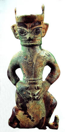 唐代詩人李白 《蜀道難》中曾經(jīng)慨嘆:「蜀道之難難于上青天!蠶叢及魚鳧,開國何茫然!」蠶叢和魚鳧都是傳說中的古代蜀王。他們活動年代和文化遺跡一直不清。1929年在四川廣漢地區(qū)發(fā)現(xiàn)古蜀人玉石坑,1986年又在廣漢三星堆發(fā)現(xiàn)了兩個祭祀坑。出土金器、青銅器、玉器、陶器、象牙骨器等近千件,還有海貝;由此了解到廣漢一帶在三、四千年以前,曾有高度發(fā)展的文化,正相當(dāng)于傳說中的古蜀王魚鳧統(tǒng)治時期。