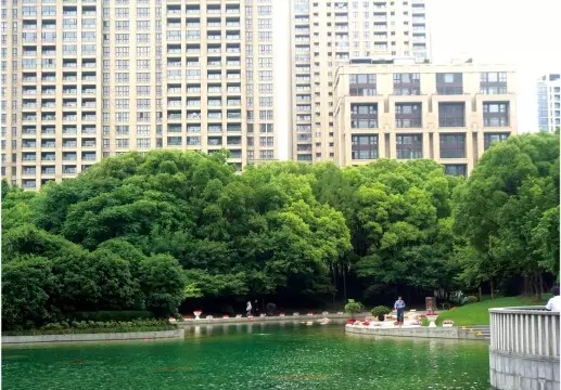 濃密的背景林把都市的喧囂隔離開(kāi),營(yíng)造了城中休閑綠地。