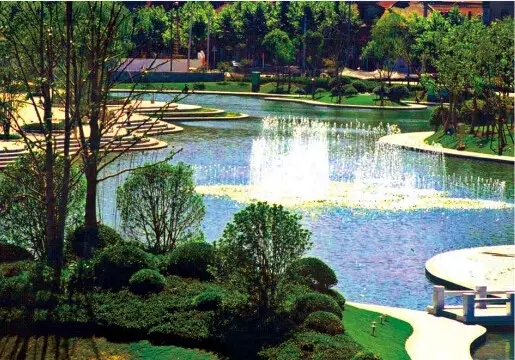 4.人工湖設(shè)計(jì)需要充分考慮水生植物及岸坡植物的合理配置與周邊的自然環(huán)境有機(jī)結(jié)合。對(duì)于要求較高的項(xiàng)目,還要配置燈帶及水底燈照明,以增強(qiáng)夜間景觀效果。