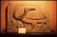 直接表現(xiàn)歌功頌德內(nèi)容的石雕還有“昭陵六駿”浮雕?!傲E”為“又刻石為常所乘破敵馬六匹于闕下”。(《唐會要?卷二十》)的六件作品。宋游師雄題昭陵圖云:“先葬文德皇后長孫氏,當(dāng)時陪葬之盛與夫刻蕃酋之像、琢六駿之像以旌武功,列于北闕,,(,“?!傲E”內(nèi)容完全是夸示武功之作。此種表現(xiàn)形式在后來各陵中演變?yōu)轳匄B浮雕,不再停留于直接夸示武功的意義而上升到以祥瑞禽鳥顯示帝王英明的象征意義。駝鳥在當(dāng)時被視為“能瞰鋼鐵”的異鳥,高宗認(rèn)為駝鳥的來獻(xiàn)是“以太宗懷遠(yuǎn)所致”,“乃刻像于陵之內(nèi)”。(《太平御覽?卷九一四》)與駝鳥相類似的內(nèi)容還有犀牛,獻(xiàn)陵石犀刻有“高祖懷遠(yuǎn)之德”字樣,明確了其設(shè)置寓意。