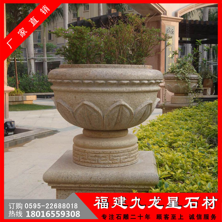 園林花缽石雕文化在中國(guó)的歷史上,有著很輝煌的歷史,它的美一直傳承到了現(xiàn)在,不僅是視覺(jué)上的享受,也是一種文化的熏陶!它采用天然石頭精雕細(xì)琢而成的石雕園林花缽。形態(tài)逼真,栩栩如生。適用于小區(qū),廣場(chǎng),園林,酒店,學(xué)校,戶外園林景觀工程等場(chǎng)所。