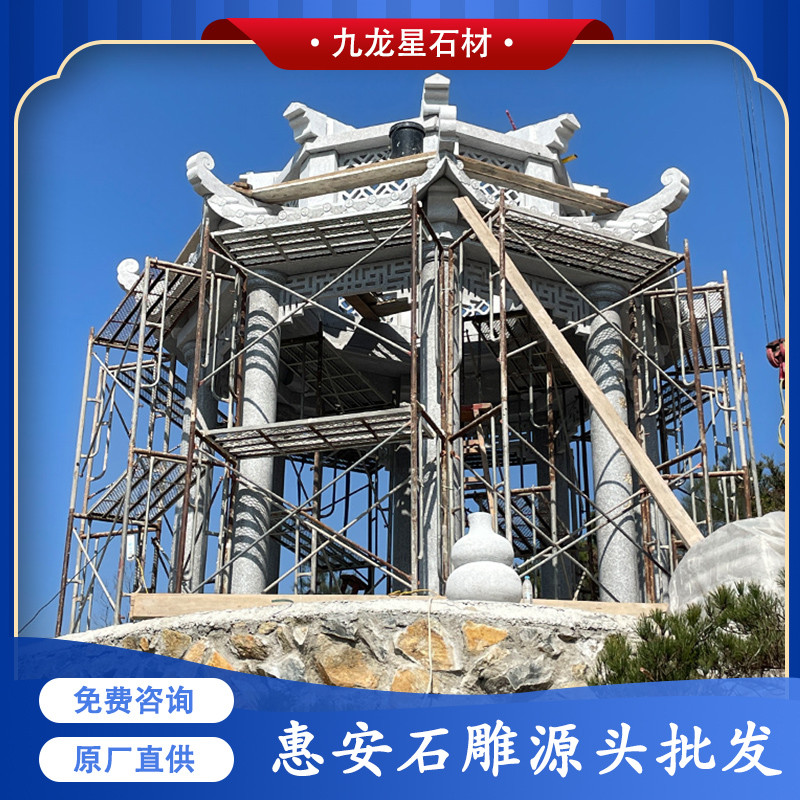 石雕涼亭的作用不僅可以作為休息點(diǎn)、休息區(qū),其實(shí)也是景點(diǎn)或者山間的一個(gè)標(biāo)志性建筑,美觀又不容易損壞,抗壓性強(qiáng)。今天主要帶給大家的是我們近期的案例——雙層惠安灰八角涼亭。