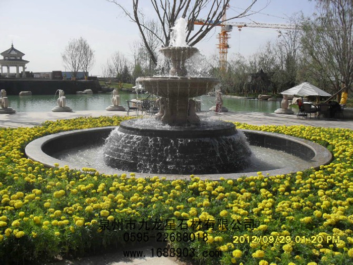 噴泉是園林中重要的組成部分?,F代園林中,除了植物景觀外,噴泉也是重要的景觀,它既是一種水景藝術,體現了動、靜結合,形成明朗活潑的氣氛,給人以美的享受;同時,噴泉還可以增加空氣中的負離子含量,起到凈化空氣、增加空氣濕度、降低環(huán)境溫度等作用,因此深受人們的喜愛。噴泉的種類很多,根據材質分為以下幾種:石雕噴泉、玻璃鋼噴泉、陶瓷噴泉、人造石噴泉、鋼管結構噴泉等。其中石雕噴泉具有結實耐用、藝術價值高、造型美觀等特點應用最為廣泛。