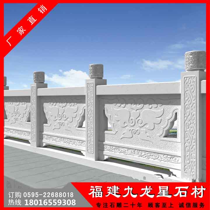 石雕欄桿是橋梁或建筑上的安全防護設施,欄桿不但要求堅固,起到一定的防護作用,而其還要注意美觀,起到美化建筑的作用。石雕欄桿優(yōu)點很多,最重要的是容易清洗,看起來高端大氣,質量也好,并且給人非常充實的感覺。而實用性上,石材的欄桿可以使用更長的年限,且結實牢固,安全性上面也是有保障的。石雕欄桿有著美觀、時尚、環(huán)保、抗老化、不變形的性能優(yōu)點,可廣泛用于市政、水利、公園、橋梁欄桿等護欄工程。