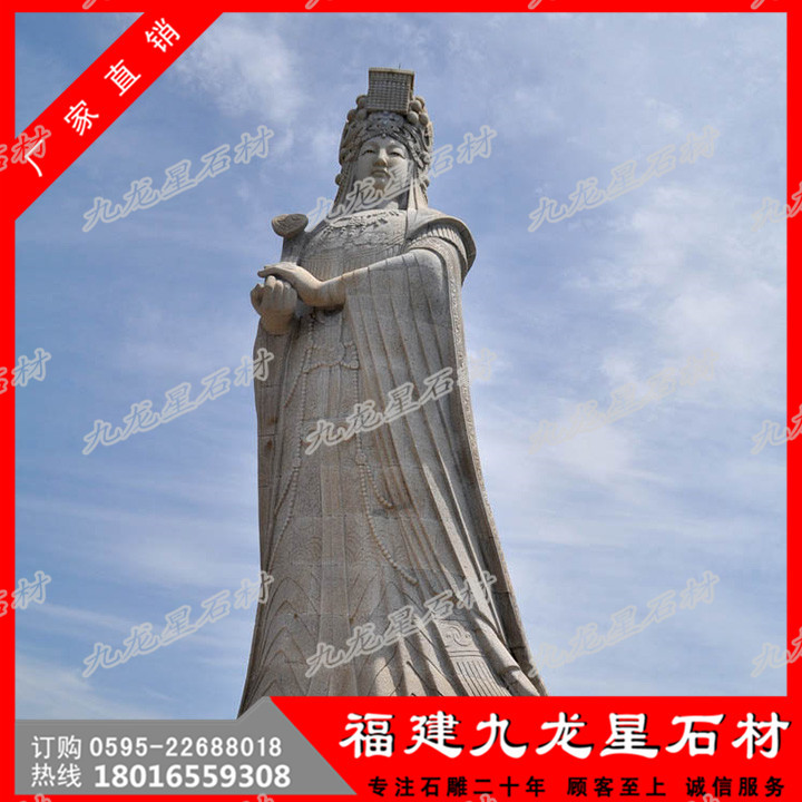 大型石雕媽祖中國(guó)民間在海上航行要先在船舶啟航前要先祭媽祖,祈求保佑順風(fēng)和安全,在船舶上立媽祖神位供奉。這就是“有海水處有華人,華人到處有媽祖”的真實(shí)寫照。而影響所及,媽祖由航海關(guān)系而演變?yōu)椤昂I瘛?、“護(hù)航女神”等,因此形成了海洋文化史中最重要的中國(guó)民間信仰崇拜神之一。