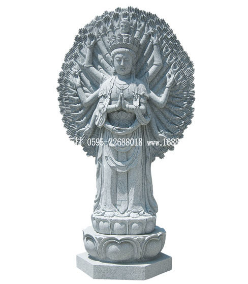 石雕千手觀音含蓮花底座總高度2.36米。千手千眼觀音,又稱千眼千臂觀音,簡稱千手觀音。千手表示護(hù)持一切眾生,千眼表示觀照一切眾生,有大慈大悲、法力無邊的意思。千手觀音的來歷佛經(jīng)里有記載。相傳在久遠(yuǎn)的過 ...