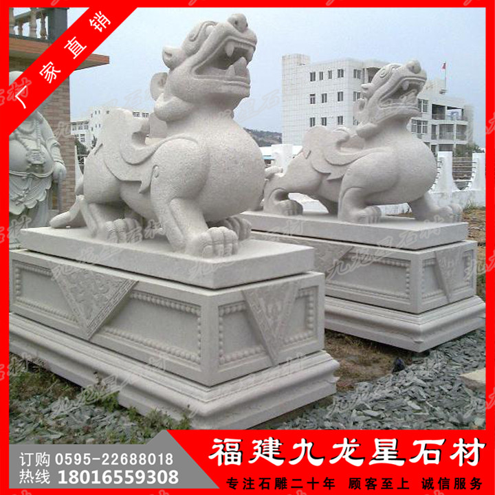銀行門(mén)口石雕貔貅是指用優(yōu)質(zhì)天青墨玉、霞玉、緬甸玉、漢白玉、墨玉、佘太玉、砂巖、大理石、花崗石、銀灰白石、雪花白等石材玉料,雕刻成各類(lèi)藝術(shù)用品和擺件的貔貅。一般采用圓雕,透雕,線雕,平雕,浮雕,畫(huà)雕,影雕等多種工藝雕刻。