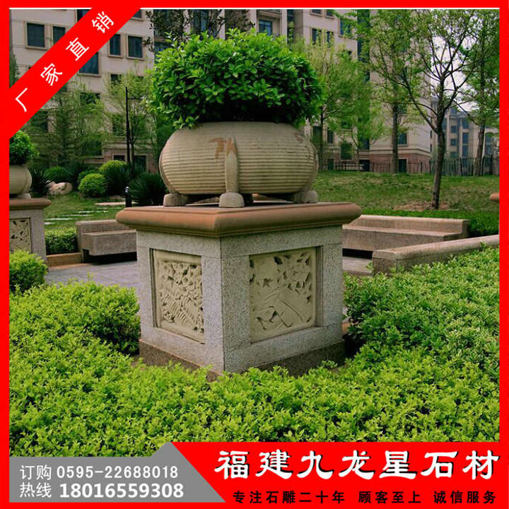花缽石雕文化在中國的歷史上,有著很輝煌的歷史,它的美一直傳承到了現(xiàn)在,不僅是視覺上的享受,也是一種文化的熏陶!它采用天然石頭精雕細(xì)琢而成的石雕花缽。形態(tài)逼真,栩栩如生。適用于小區(qū),廣場,園林,酒店,學(xué)校,戶外園林景觀工程等場所。